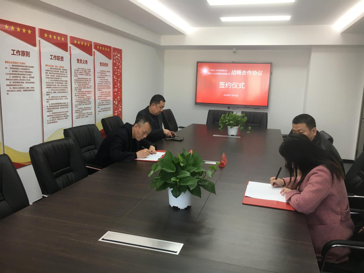 為達(dá)成長(zhǎng)期、穩(wěn)定、緊密的戰(zhàn)略合作,實(shí)現(xiàn)優(yōu)勢(shì)互補(bǔ)、互利共贏(yíng),西安人才市場(chǎng)有限公司與西安乙卜企業(yè)管理咨詢(xún)有限公司雙方就建立戰(zhàn)略合作關(guān)系及交流合作常態(tài)機(jī)制達(dá)成共識(shí),于2020年11月19日簽訂了《戰(zhàn)略框架合作協(xié)議》。西安人才市場(chǎng)有限公司董事長(zhǎng)趙文勝、總經(jīng)理助理許波,西安乙卜企業(yè)管理咨詢(xún)有限公司法人嚴(yán)媛、經(jīng)理鄭海剛出席簽約儀式。